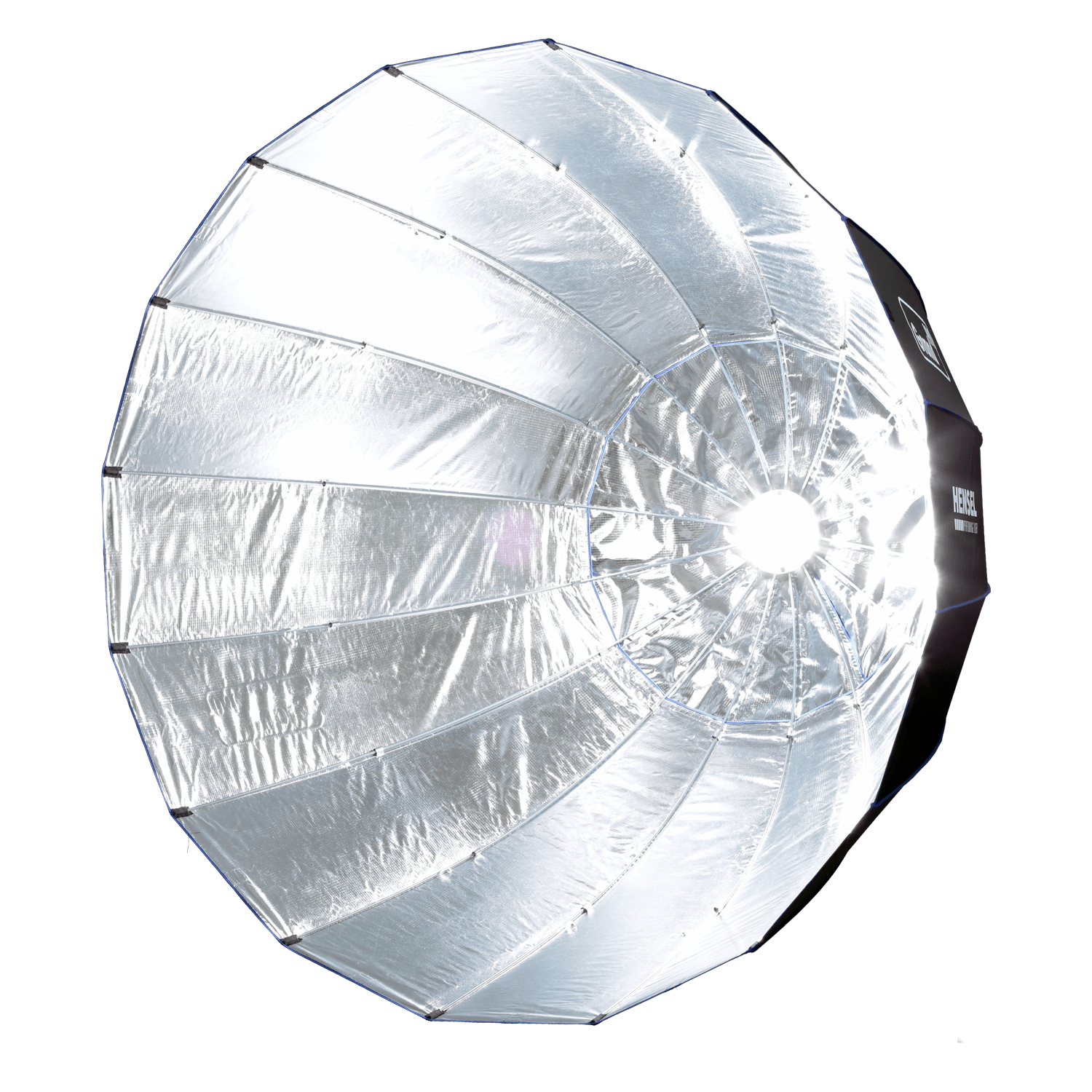 سافتباکس عمیق با طراحی پارابولیک برای ایجاد نوری یکنواخت، نرم و در عین حال جهتدار، مناسب برای پرترههای حرفهای، فشن و تبلیغاتی.